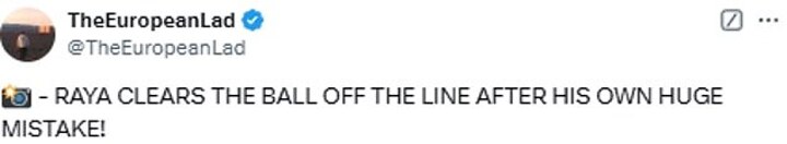 'Raya clears the ball off the line after his own huge mistake,' said another.