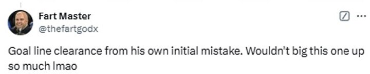 'Goal line clearance from his own initial mistake. Wouldn't big this one up so much lmao,' another said.