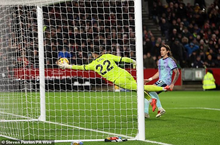 Arsenal were trailing 1-0 in the 28th minute when Keane Lewis-Potter tried his luck for Brentford.