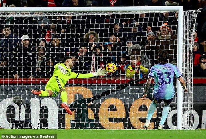Somehow, the Spaniard plucked out an acrobatic backwards dive and clawed away the ball mid-air above the goal-line - and within a minute Gabriel Jesus had scored at the other end to cancel out Bryan Mbeumo's opener.
