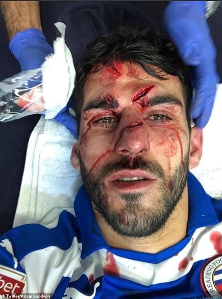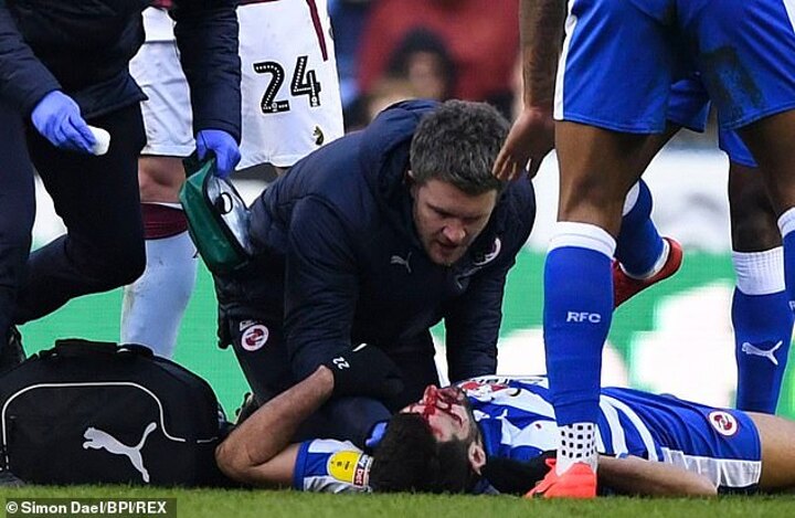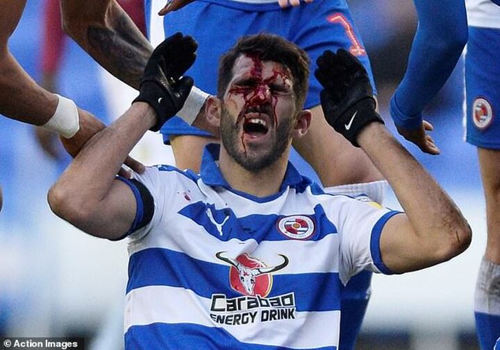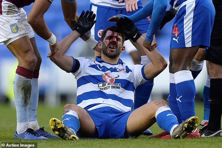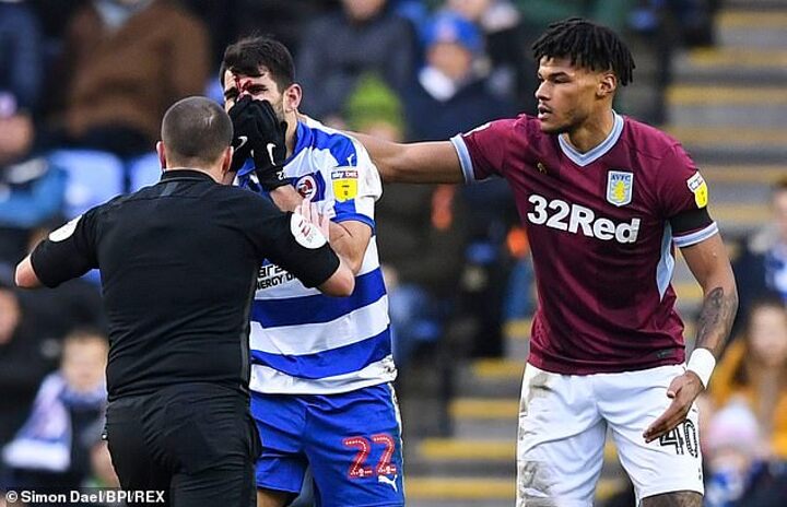 Reading striker Nelson Oliveira was left with blood pouring down his face from a nasty forehead gash after Aston Villa's Tyrone Mings stamped on him.