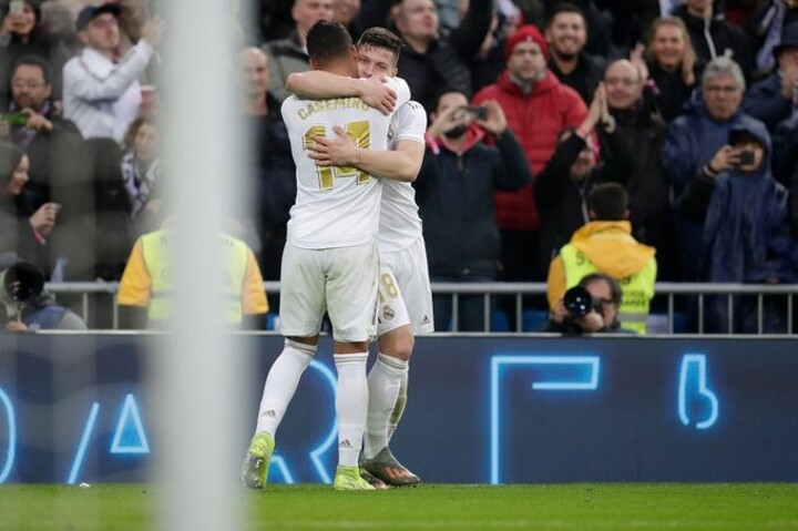Real Madrid XI: L. Modrić, T. Kroos, Marcelo, T. Courtois, Casemiro, Carvajal, R. Varane, Lucas Vázquez, L. Jović, Éder Militão, Rodrygo