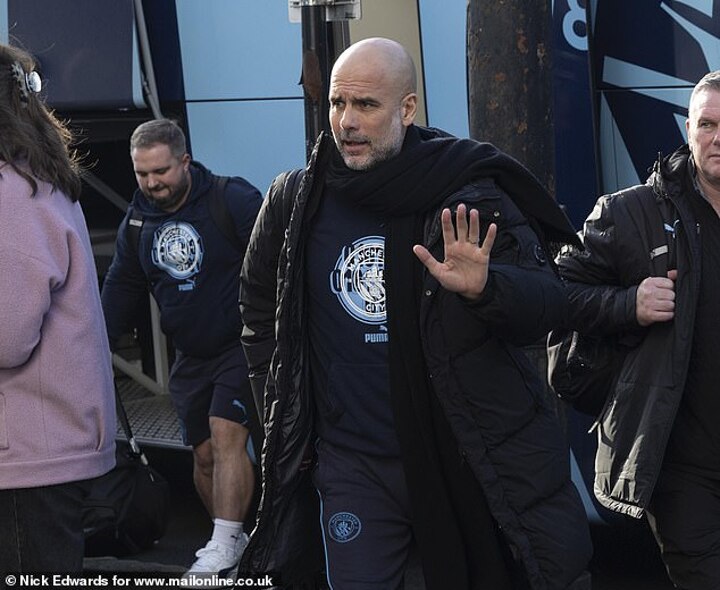 Guardiola has clearly been showing the strain as he appeared to scratch his own face in the dugout during the Champions League clash with Feyenoord. As his team surrendered a three-nil lead, he was seen on the touchline clawing at his head and was later pictured with red marks on his face.
