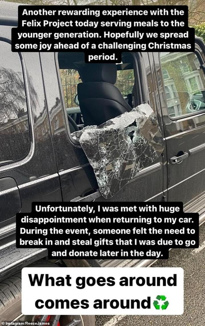Reece James has revealed his anger and frustration after heartless thieves broke into his car to steal presents he was planning to hand to hungry children.