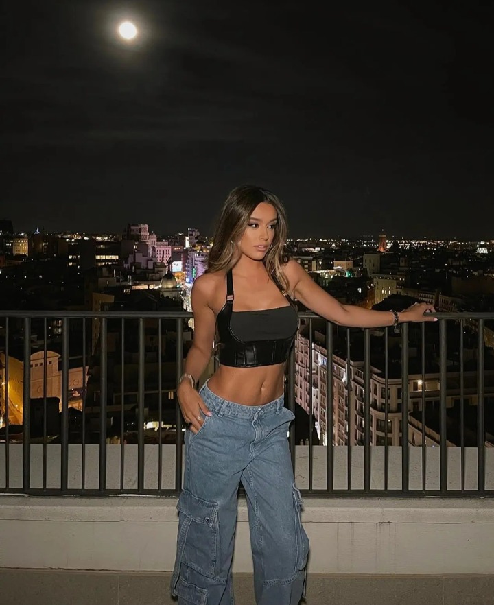 Marta, 22, wore a stylish black top, that showed off her abs, with baggy jeans in her latest Instagram post.