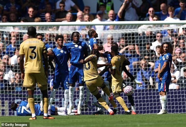 The midfielder struck a rocket of a free-kick past Robert Sanchez in the 13th minute, beating Chelsea's wall in the process, but Marc Guehi's actions were deemed to be unlawful.