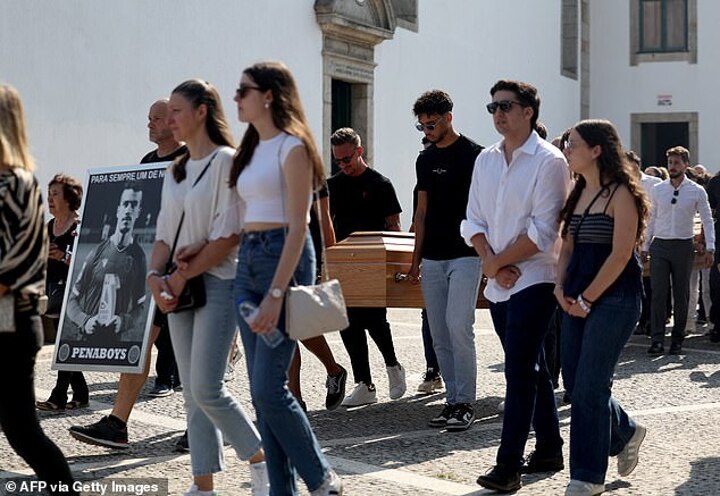 Liverpool teammates, Manchester City’s Bernardo Silva and Manchester United full back Diogo Dalot, both Portuguese national team players, were among the footballers who packed into the church this morning - the Igreja Matriz de Gondomar.