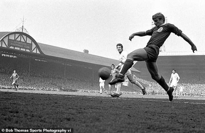 On a black and white broadcast of Match of the Day, Hunt netted after just 11 minutes in front of the Kop to put Liverpool in front.