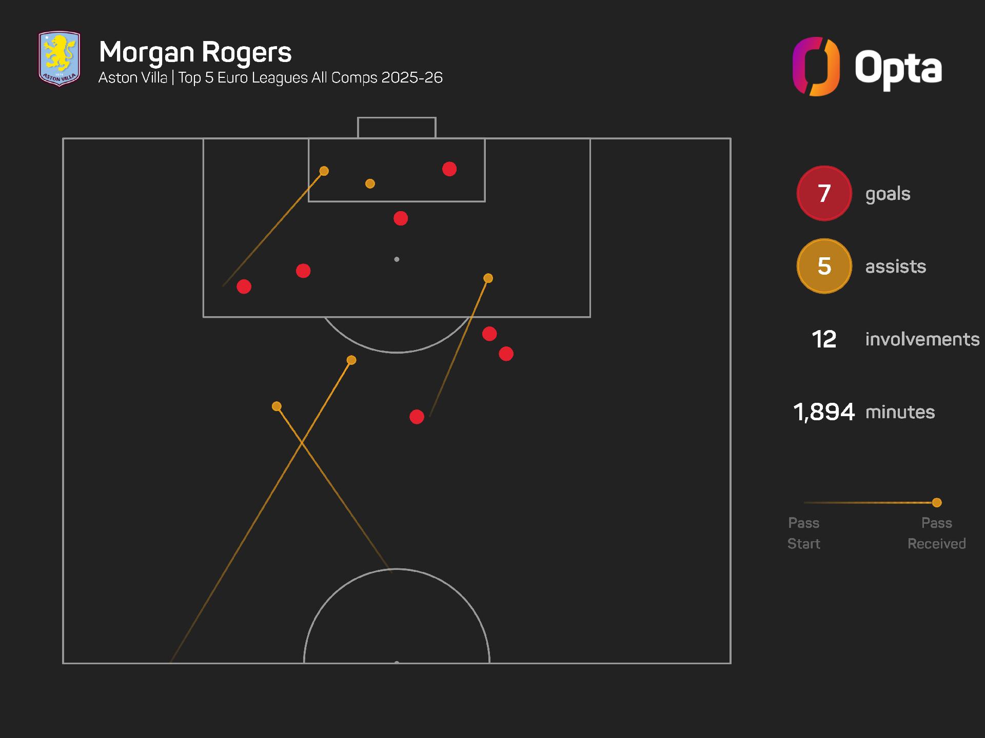 Rogers has been directly involved in more Premier League goals than any other English player across the opening 17 matchdays of this season (10 – seven goals, three assists).