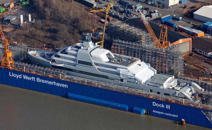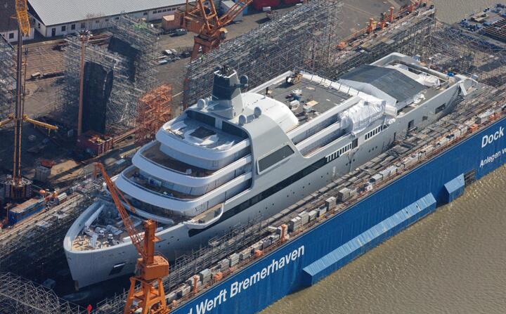 The yacht was built at the Lloyd Werft shipyard in Bremerhaven, Germany and the shed it was constructed in was larger than Buckingham Palace.