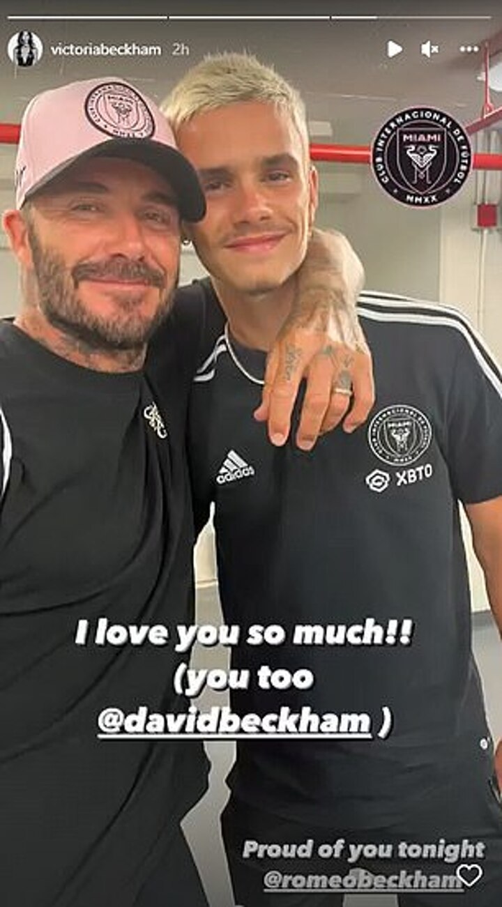 Beckham Snr posted his support on social media for his son's performance, saying: 'Well done mate so proud. First goal in a Miami shirt.'