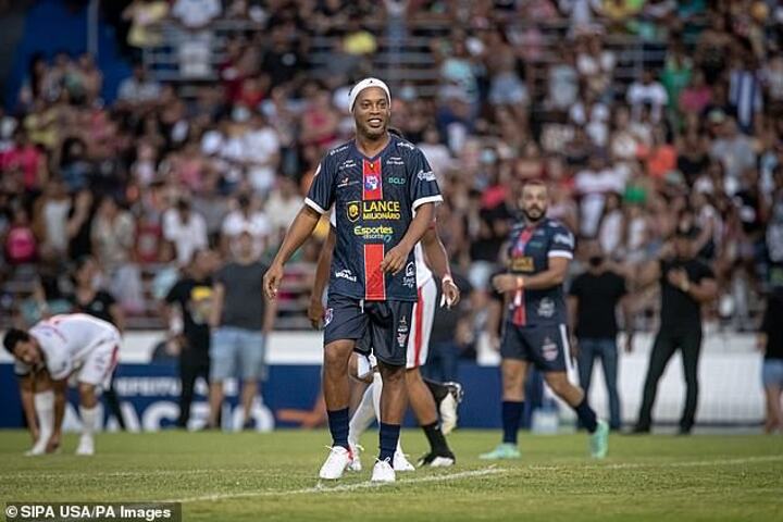 The game was held at the Estadio Rei Pele in Brazil, where Ronaldinho reportedly lined up alongside Ronaldo's son.