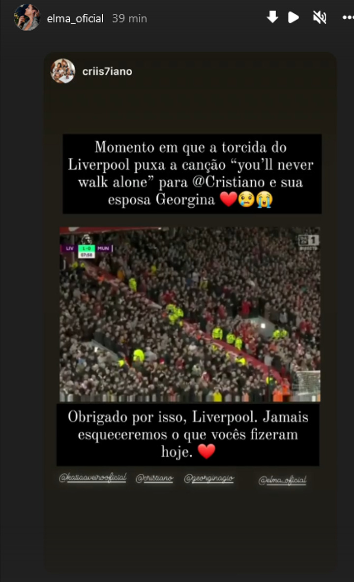 Cristiano's Madeira-based sister Elma showed her emotion overnight by publishing footage of the gesture on her social media and writing: “Thank you for this Liverpool. We will never forget what you did today.”