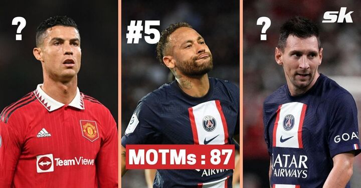#5 Neymar Jr. - 87 man of the match awards (28% of games)