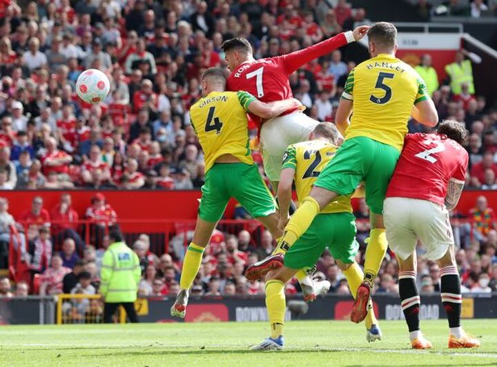 Ronaldo was quick out of the blocks to put United ahead against Norwich, sweeping home from Anthony Elanga's cutback after seven minutes of play. And he doubled the advantage using his aerial prowess just after the half-hour mark, rising to head home to clinch his 20th of the season.