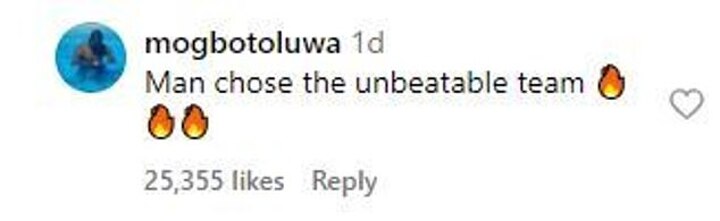 'Man chose the unbeatable team', one fan said with a fire emoji accompanying his comment.