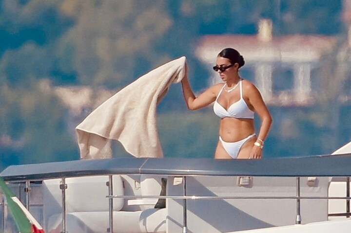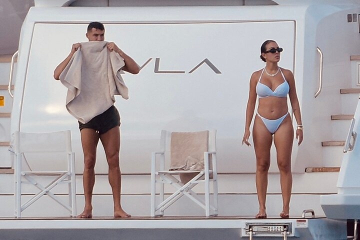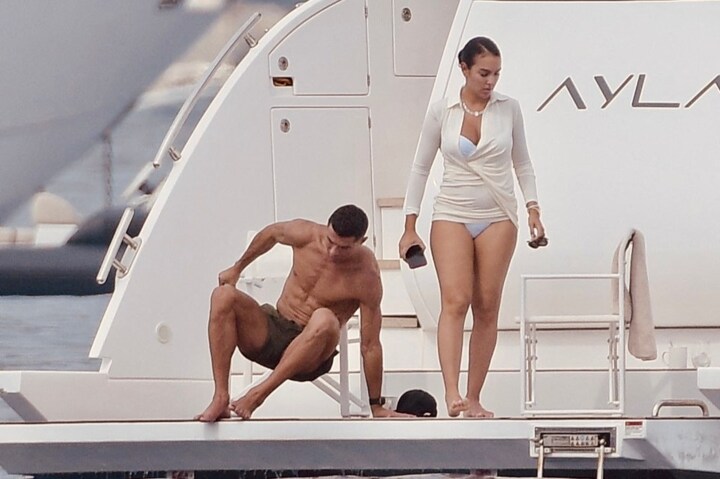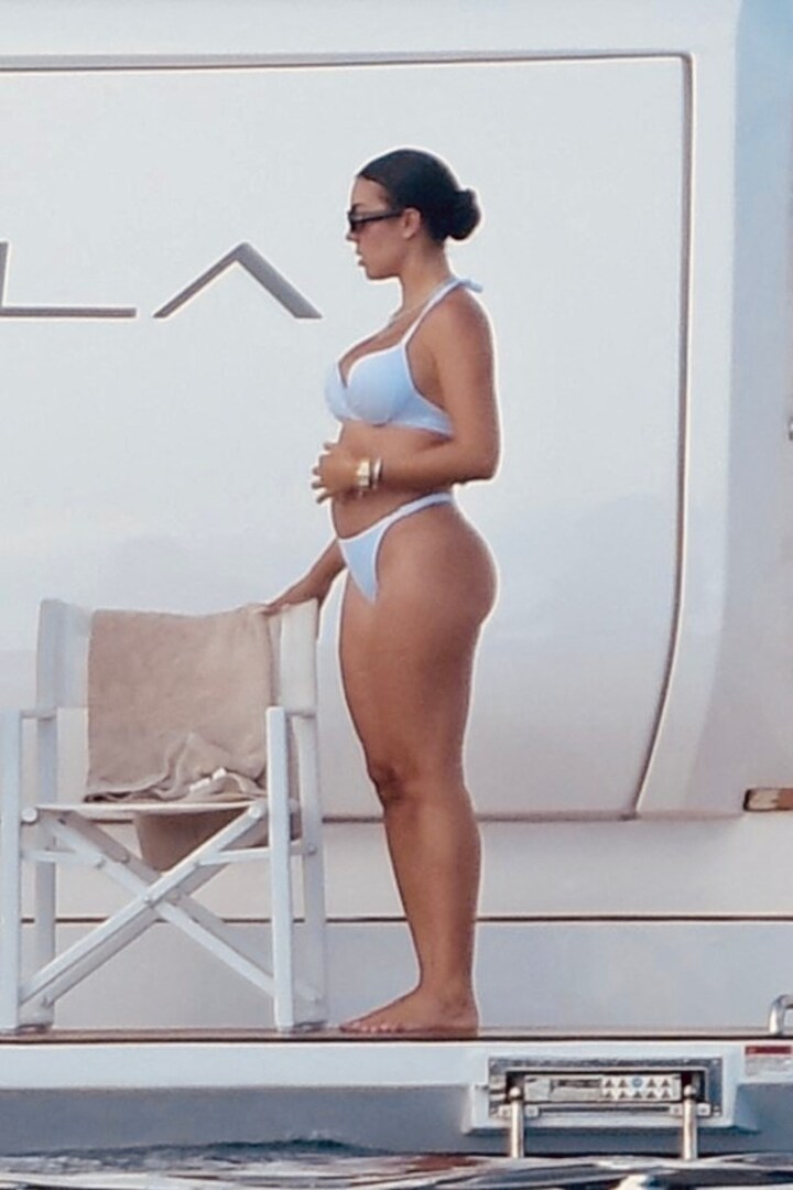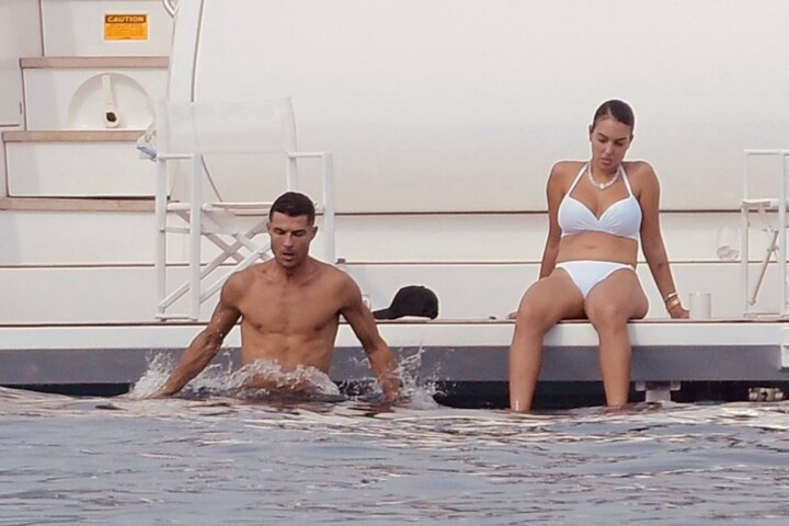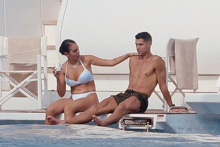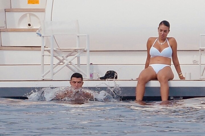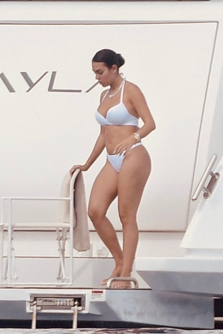 Ronaldo, 39, showed off his incredible physique in swimming trunks as Georgina, 30, dazzled in a bikini.