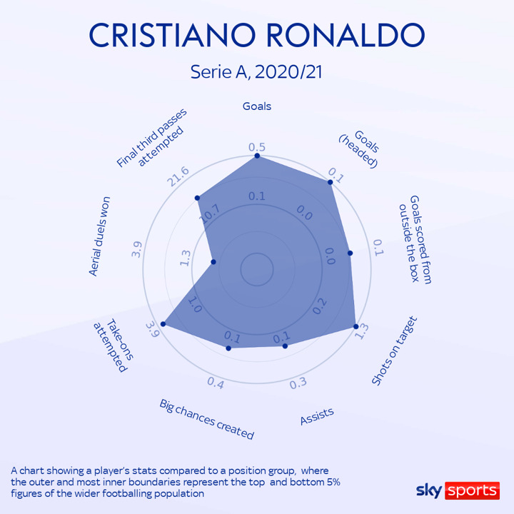 On the pitch, there can be few complaints about Ronaldo's personal numbers. While 21 league goals in his first season was his lowest return since his days at Manchester United, he was still the club's top scorer and responded with 60 goals across the next two campaigns, outscoring everyone else in Italy last year.