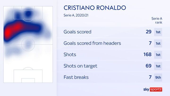 There have been plenty more examples since his move to Juventus - not least the gravity-defying leap that allowed him to find the net in a Serie A game against Sampdoria in December 2019 - and last season he was particularly prolific.