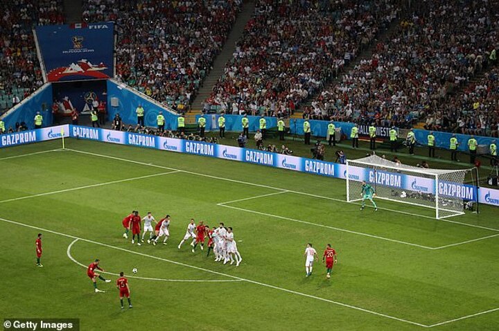 Showing the confidence to place the ball down and claim the freekick for his own, Ronaldo's body language immediately suggested he was going for goal, despite being at least 35-yards out.