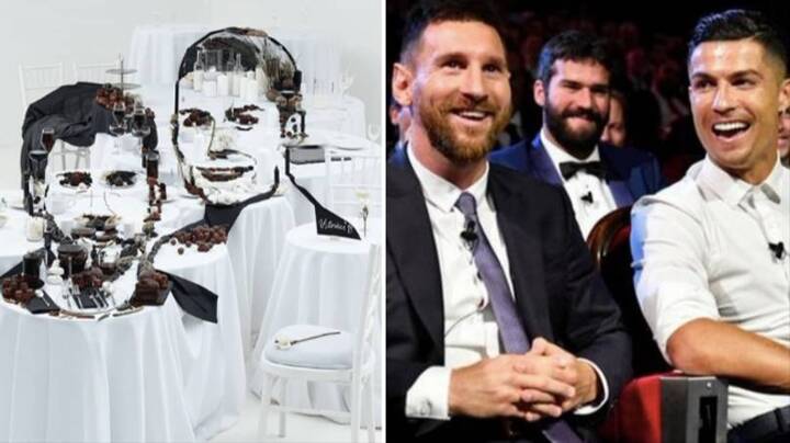 But in response to the invitation, Lithuanian artist Jolita Vaitkutė spent a staggering 27 hours putting together a piece of how Ronaldo and Messi having dinner together might look.