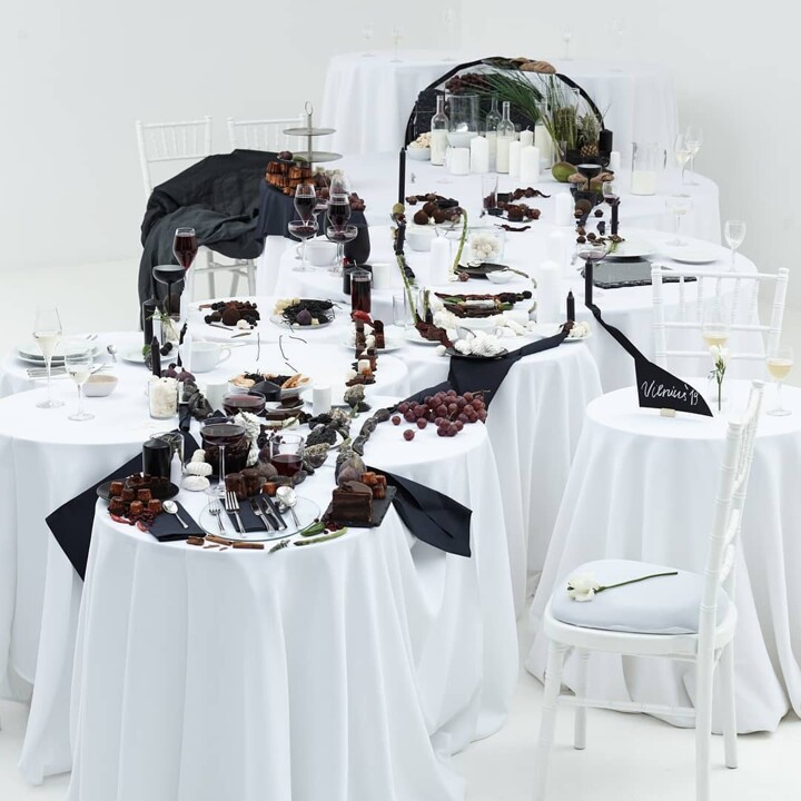 In total, the artwork is eight meters long and three meters wide, made of 658 objects that include oysters, shrimps, grapes and various desserts and drinks. Every object was picked individually from 17 different stores around Vilnius, the Lithuanian capital.