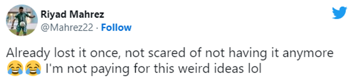 Mahrez wrote: "Already lost it once, not scared of not having it anymore I'm not paying for this weird ideas lol."