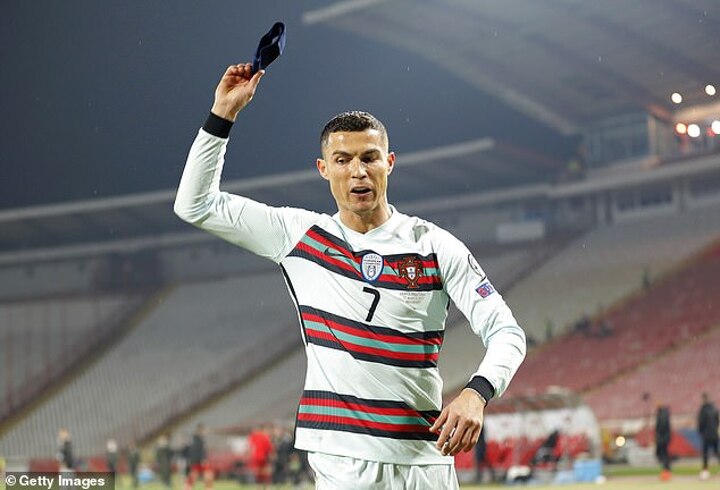 After thinking he had given Portugal a late 3-2 win in World Cup qualifying against Serbia, Ronaldo was outraged to see his goal not given.