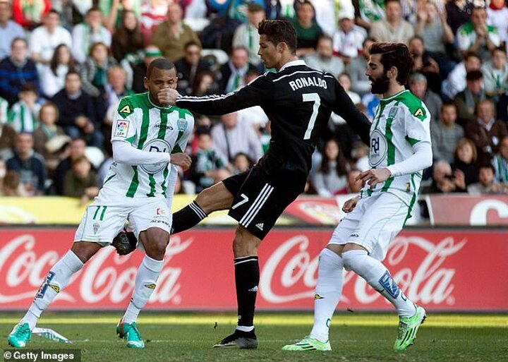 That was certainly the case when Real Madrid travelled to Cordoba in 2015, seeking a late winner in the game's final 10 minutes. Seemingly without provocation, Ronaldo simultaneously swiped at the leg of fullback Edimar and caught him in the face with his left hand in the same motion.