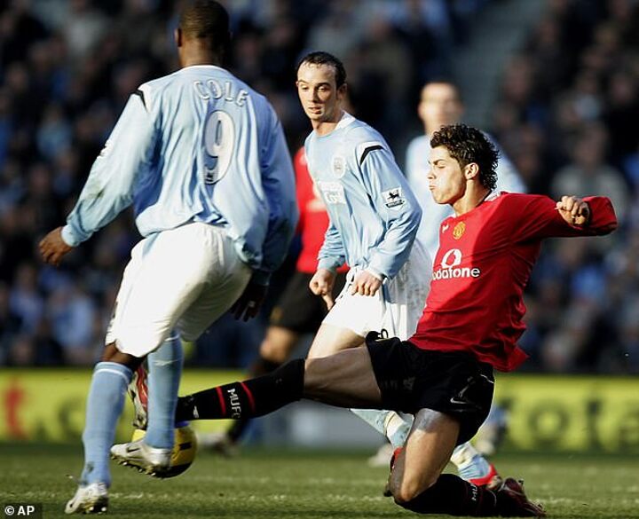United legend Andy Cole had by this stage swapped his blood red strip for a light blue and he was on the receiving end of an ugly challenge by Ronaldo in the 66th minute of the Etihad contest.