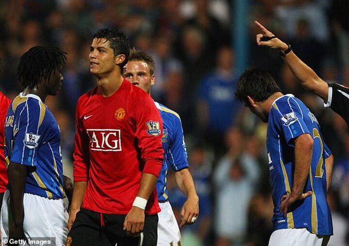 Ronaldo went another 18 months before he was next sent off, this time after a coming together with Portsmouth midfielder Richard Hughes.