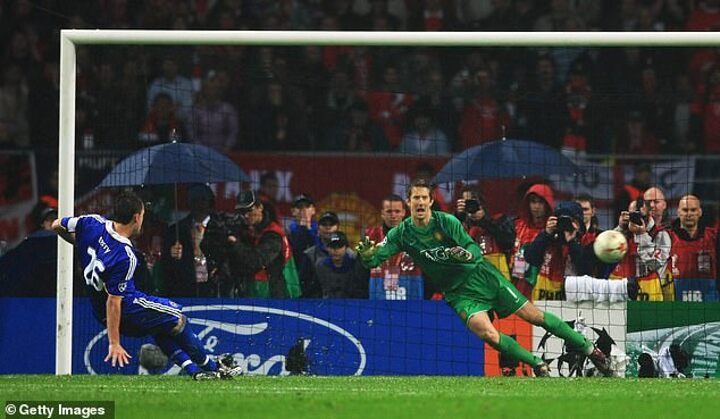 After an evenly poised match between Chelsea and United in 2008, Terry stepped up to the spot in the penalty shootout but slipped in his run up, sending the ball veering off to the right, and United ended up winning 6-5.