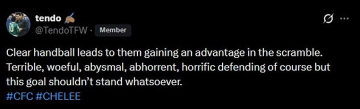 A second added: '"Accidental handball". Chelsea have been robbed.'