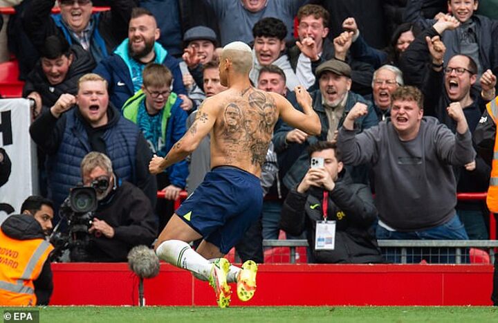 The pair were actually having a joke at his expense as Richarlison has actually only been booked once for taking his shirt off to celebrate.