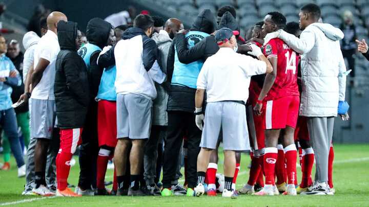 Flames and smoke could be seen in the middle of huddling Simba players during the warm-up before the match where Pirates went on to win 1-0 in regulation time for a 1-1 aggregate scoreline but they progressed to the semi-finals via penalty shootouts.