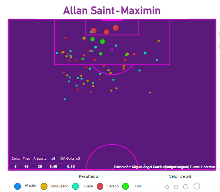 Saint-Maximin is by far the player who has completed the most dribbles [150 out of 252] in the five major European leagues.