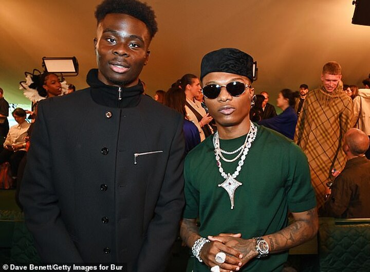 Saka was also pictured posing with other A-list celebrities in attendance including Nigerian singer Wizkid, British rapper Kano and Arsenal supporter and singer Mabel.
