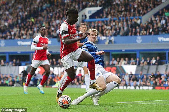 Meanwhile, Saka was in attendance as a high-profile celebrity and was placed on the front row of the catwalk next to his Tottenham rival.
