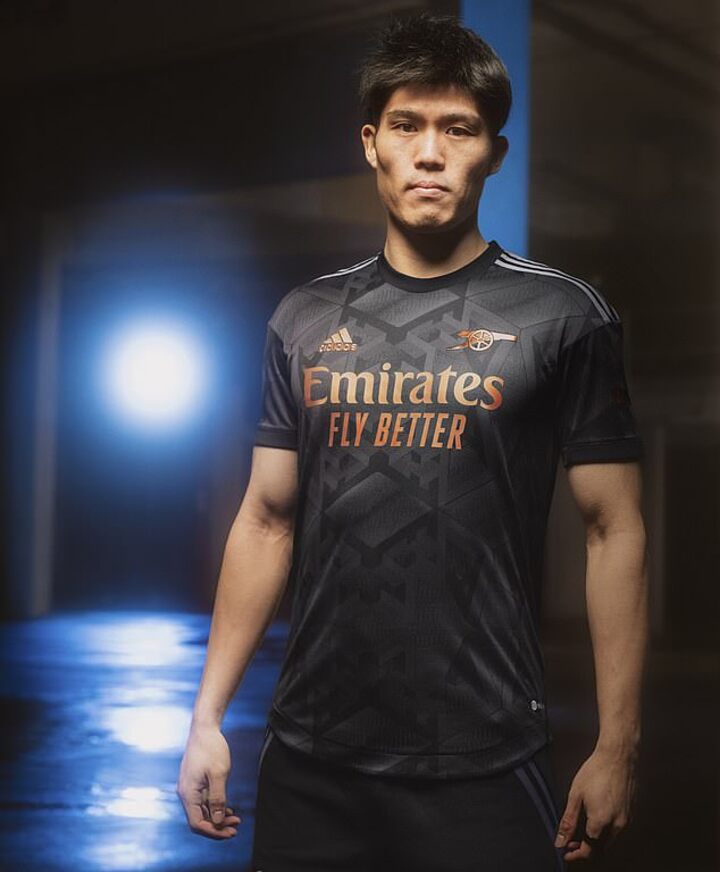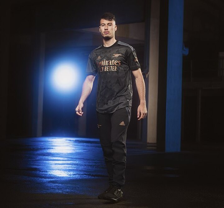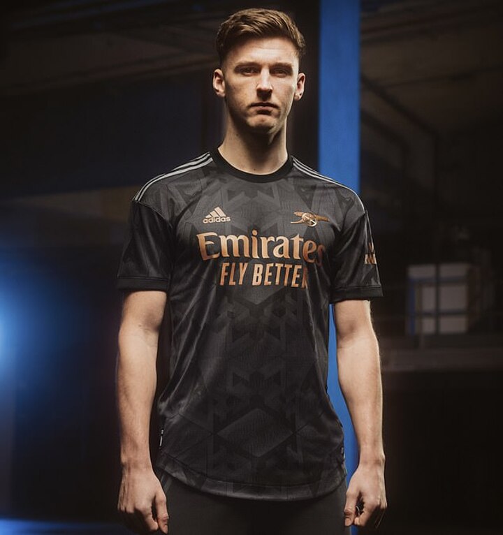 Adidas' latest design has seen them introduce a bronze badge of the famous Gunners cannon as well as three metallic trims onto the shoulders of the new strip.