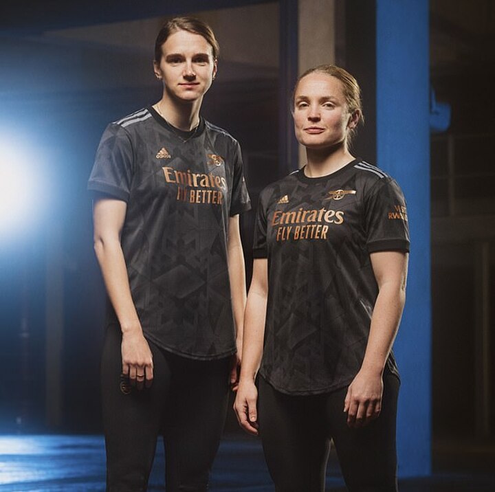 England Women's captain Leah Williamson and Holland star Vivianne Miedema meanwhile modelled the new away women's shirt, as did Gunners captain Kim Little and last summer's signing Mana Iwabuchi.