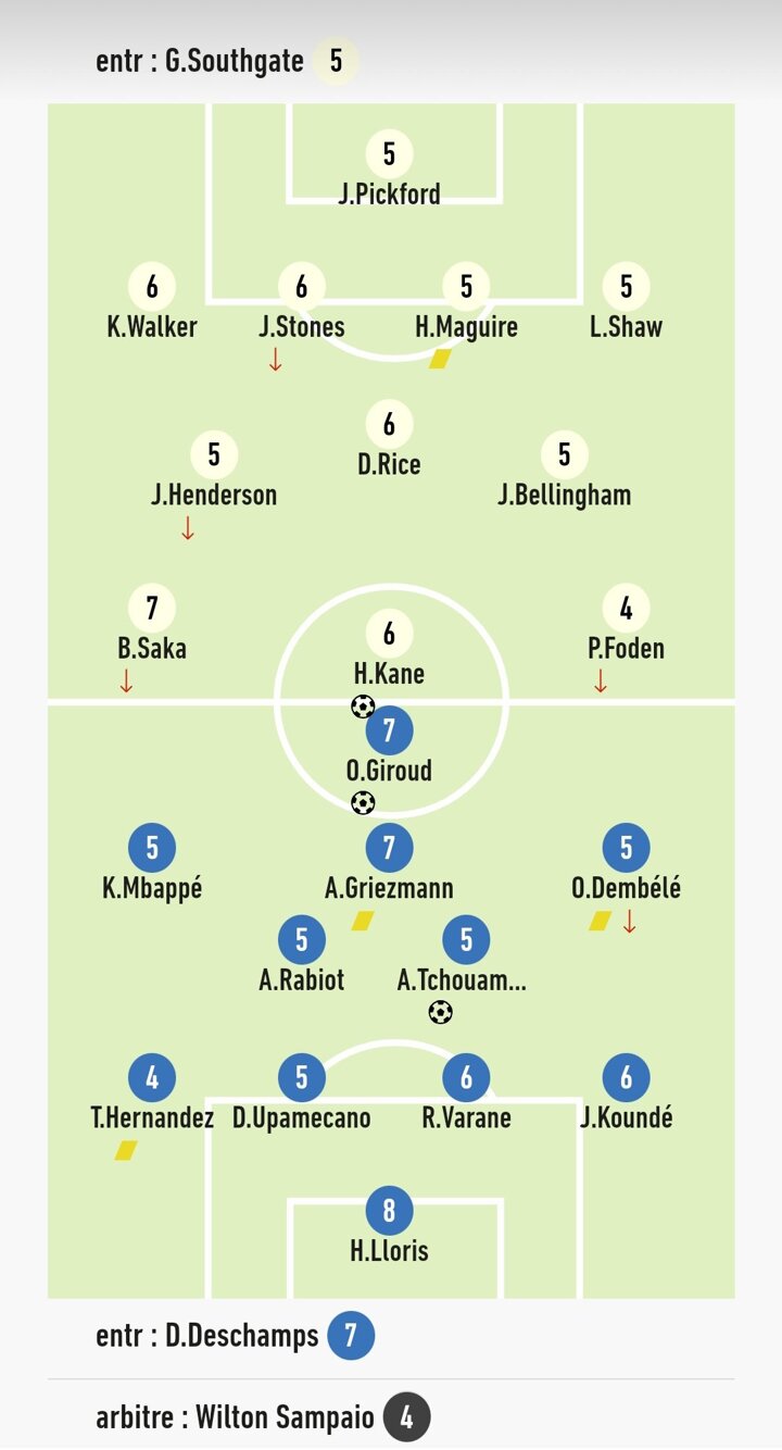 It was mostly fives and sixes across the board for both teams, although Olivier Giroud and Antoine Griezmann were both given a seven after impressing on the night.