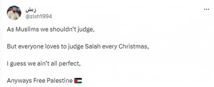 Others defended Mo, with one writing: ''As Muslims we shouldn't judge. But everyone loves to judge Salah every Christmas. I guess we ain't all perfect. Free Palestine.'