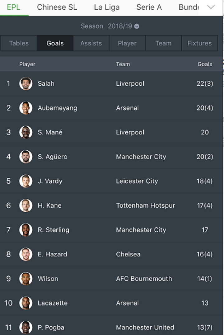 His closest rivals in the battle for the Golden Boot award, presented by Cadbury, are Sergio Aguero, team-mate Sadio Mane and Pierre-Emerick Aubameyang.