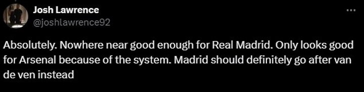 'So, out of the outstanding defensive work he's been doing, you only chose one bad moment to disqualify him as a potential target for Real Madrid? It is so unfair,' said one.
