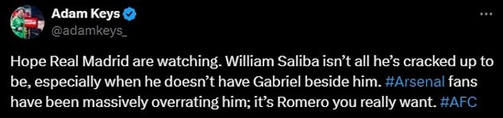 'Arsenal fans have been massively overrating him; it’s (Cristian) Romero (of Tottenham) you really want.'