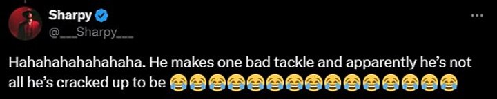 'Hahahahahahahaha. He makes one bad tackle and apparently he’s not all he’s cracked up to be,' another wrote.