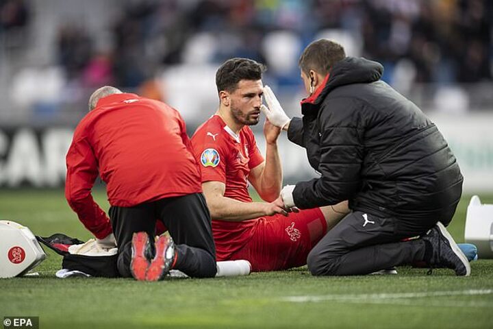 A statement from Headway on Monday said: 'The charity has demanded UEFA launches an investigation into the circumstances that resulted in Swiss player Fabian Schar being cleared to continue playing in a match against Georgia - just minutes after being knocked unconscious and needing emergency help from a member of the opposition.'