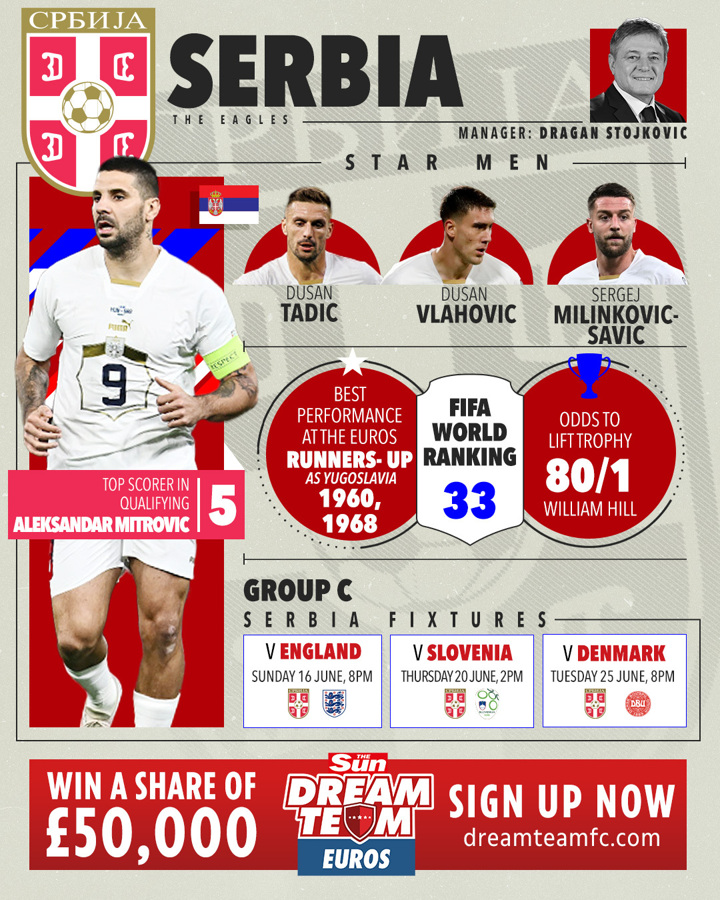 Serbian hopes will be pinned on the goal threat from two top-class forward players in Mitrovic and Vlahovic.