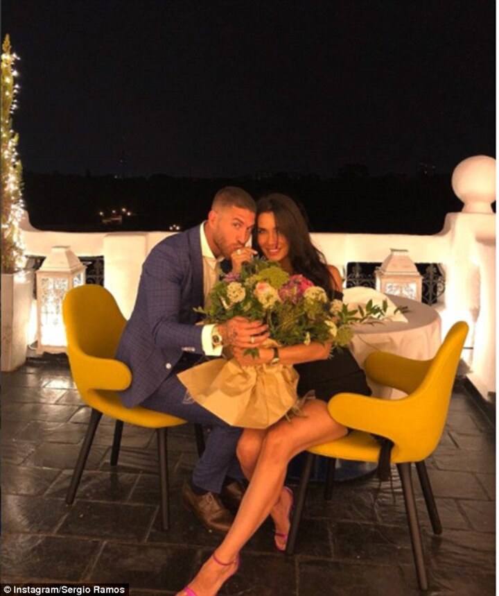 The pair were dressed to the nines and had a late night, romantic dinner on a balcony where Ramos brought his fiancee a bouquet of flowers, as well as the diamond rock.