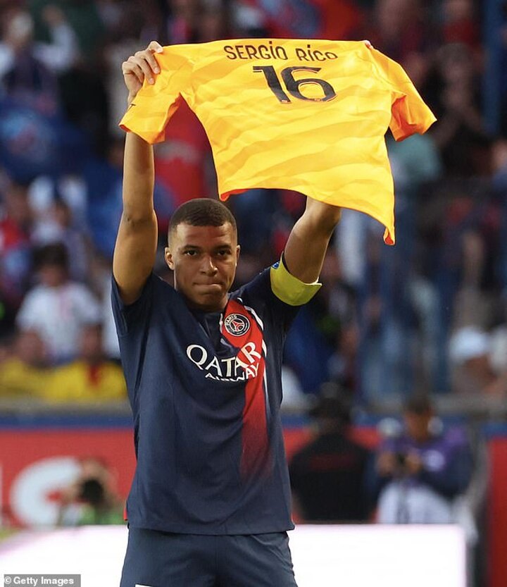 After scoring a penalty in the 21st minute, Mbappe celebrated his goal by holding up a shirt with Rico's name and the No 16 on it.